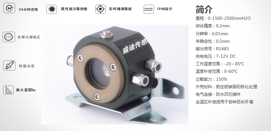 SD-226型晶硅式液位变送器是由储液器、进口高精度芯体和特殊定制电路模块、保护罩等部件组成。适用于测量地量程小精度高的液位测量。主要应用于地铁隧道,楼房地基沉降,大坝的测量 。